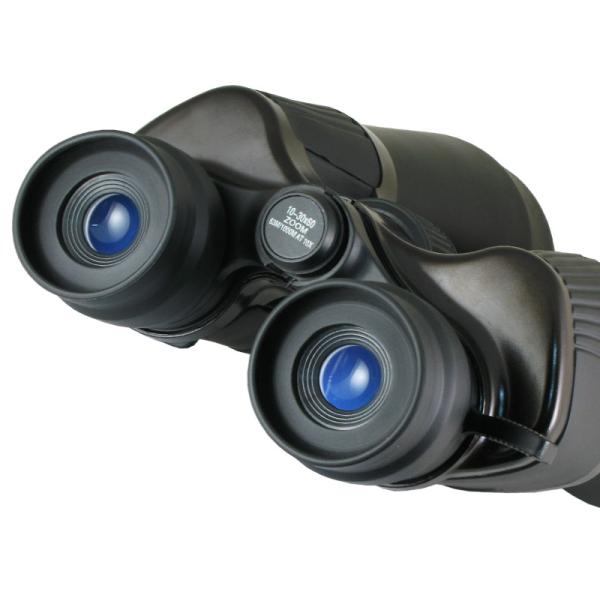 The 10-30x60mm Reverse Porro Zoom Binoculars utilize the unique porro prism setup to create a compact design for larger 60mm objective lenses. The powerful 10-30x zoom allows the user to either view a wide landscape scene or zoom in on a specific object for more detail. A durable rubber finish provides protection from impact and also serves as a comfortable gripping surface.